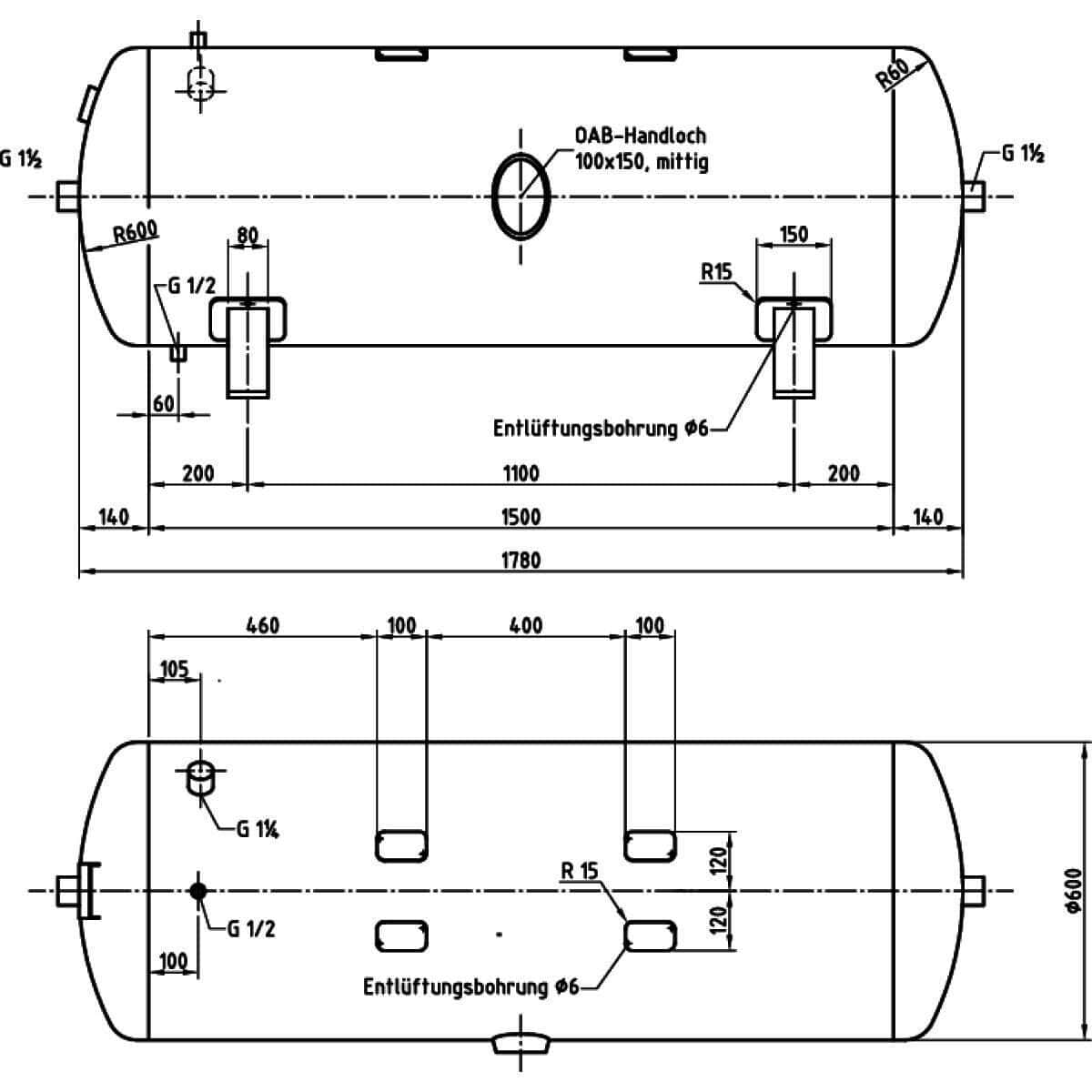 - Druckluftbehälter nach AD 2000 / ohne Armaturensatz / 11 und 16 bar